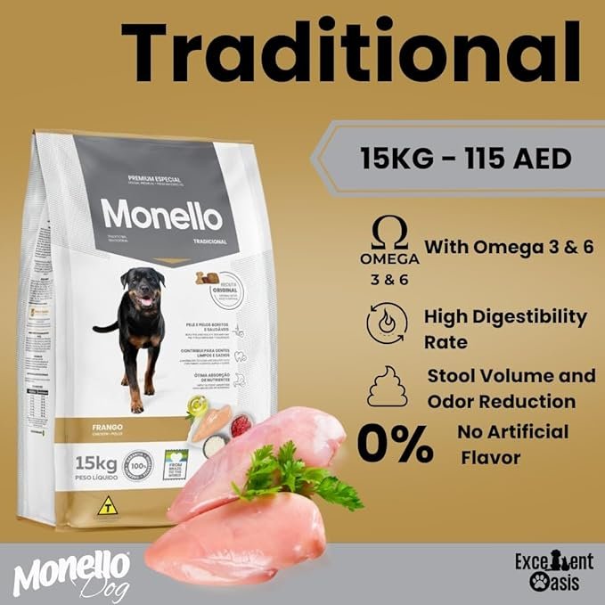 - The new Monello Adult Dog Traditional Chicken provides a digestibility greater than 80%, so that pets have more energy and vitality.